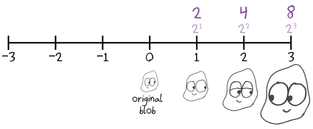 Picture a bacterial blob, doubling in size every hour.