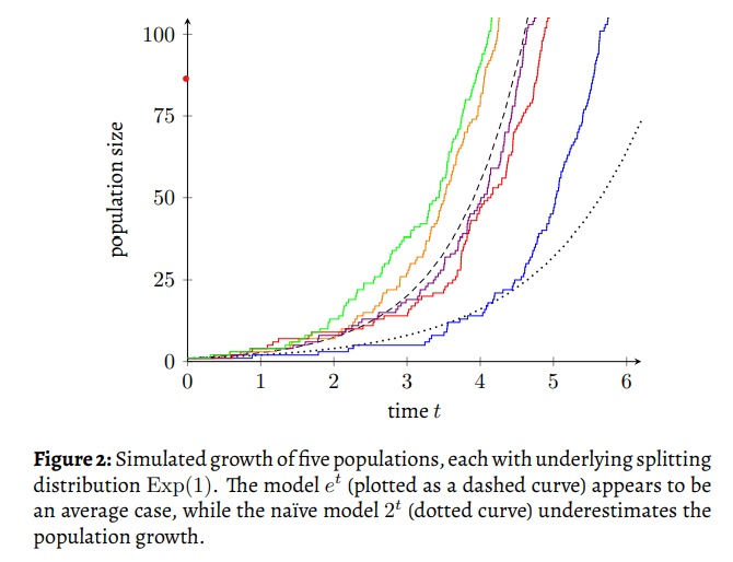 “Non-obvious” is gentle language for a shocking fact. The harsh truth, in a paper that John wrote with collaborator Matthew Wright: average doubling time is faster than average dividing time.