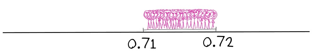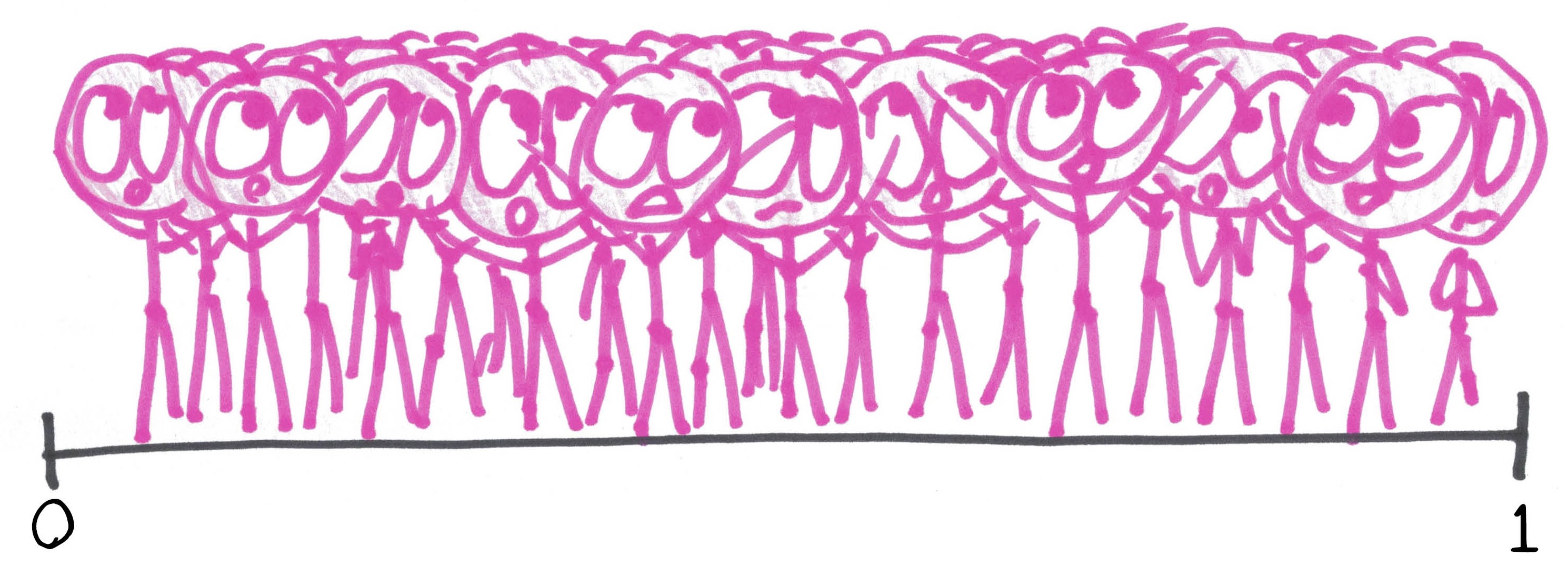 The digits rattled on. Three, six, zero, two… and on, and on, and on. Soon we knew that the winner would be between 0.713602343995 and 0.713602343996. Still, infinite numbers remained in contention. Infinite creatures held hope in the hearts.