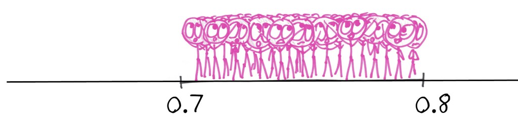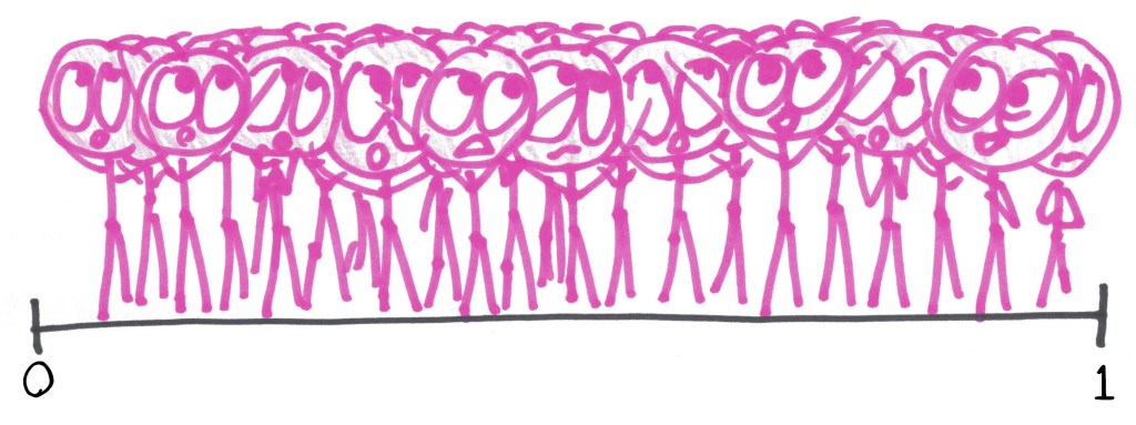 I say “no chance” literally. They were sampling uniformly from the unit interval. Each of us had the same probability of victory: zero. Yet (and I know I was not alone in this) I was sure that I would triumph. In an irrational space of my mind, lower than logic and deeper than thought, I non-reasoned thus: