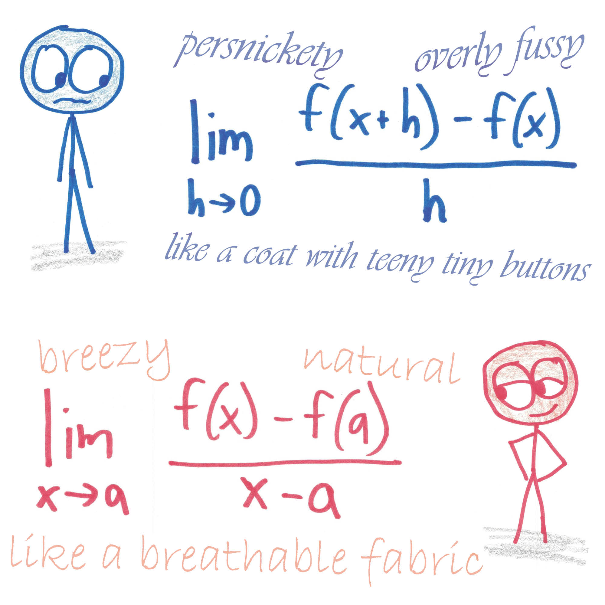 I almost went the other way on this one. After all, is this not the opposite of my advice on the definition of a derivative? Here, am I not promoting easy manipulation over conceptual illumination?