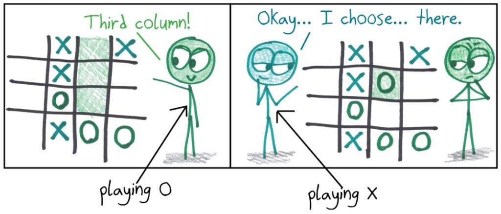 I invented this variant on tic-tac-toe just a week ago. Either it’s really fun or I’m deluding myself – both are highly possible! Anyway, the rules are here, and the survey is here.